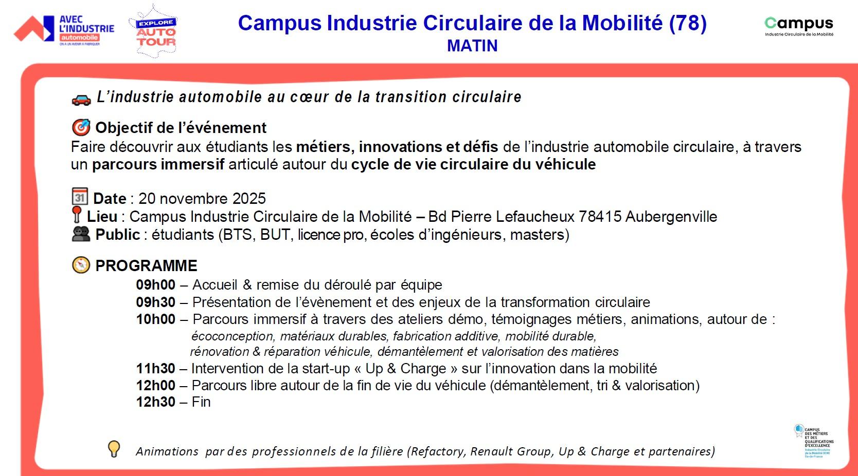 GMP1-TP4 – le jeudi 20 nov 2025 - visite du centre Refactory sur le site Renault – Flins à Aubergenville : évolution des métiers / des matériaux – présentation de l’activité Refactory par un responsable du pôle transition circulaire et entretiens avec d’autres dirigeants de la pépinière d’entreprise.