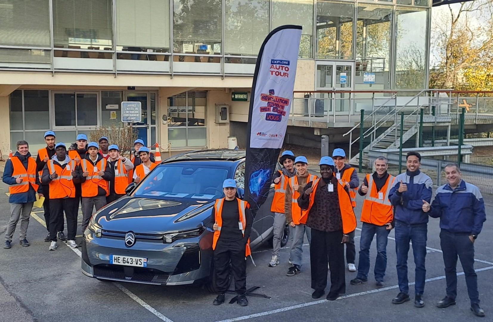 GMP1-TP1 - le jeudi 20 nov 2025 : visite du centre technique Stellantis de Carrières sous Poissy – découverte des bancs de tests moteurs thermiques / électriques et hybrides par M. LECLERC, responsable du pôle test mondial. Accueil et photo souvenir de M. AYMAR de LHERMITE directeur du site Stellantis de Carrières-sous-Poissy.