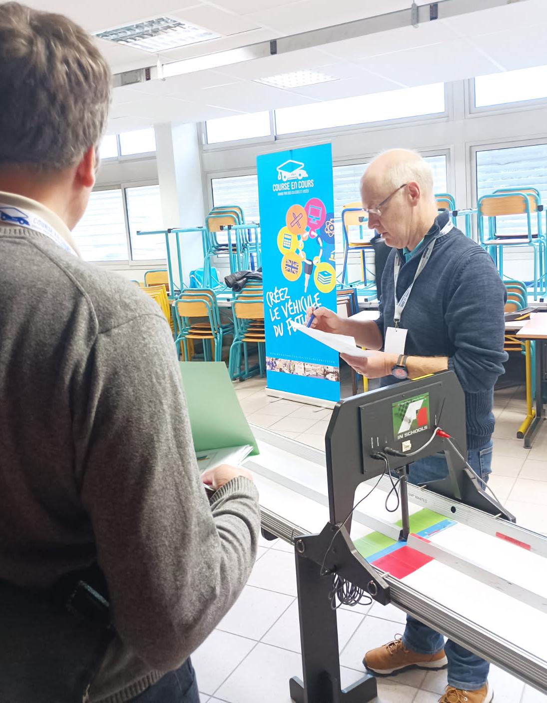 Par exemple, nous vous présentons ci-dessous la "piste", animée par M. Brossard, Professeur Agrégé en Génie Mécanique à l'IUT de Mantes, pour révéler l'évolution de l'épreuve :